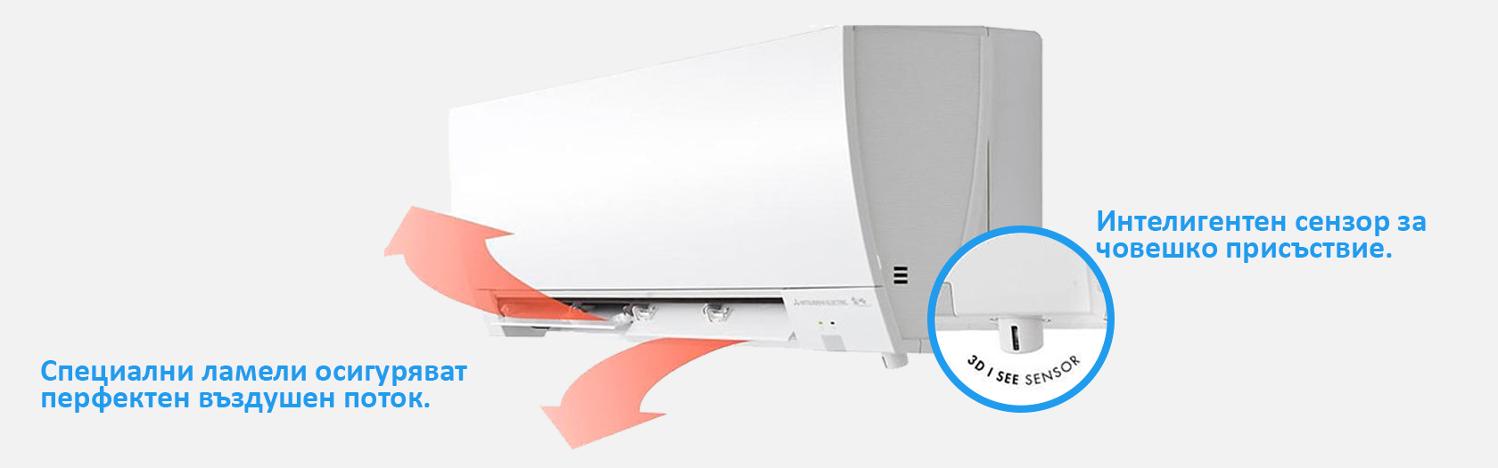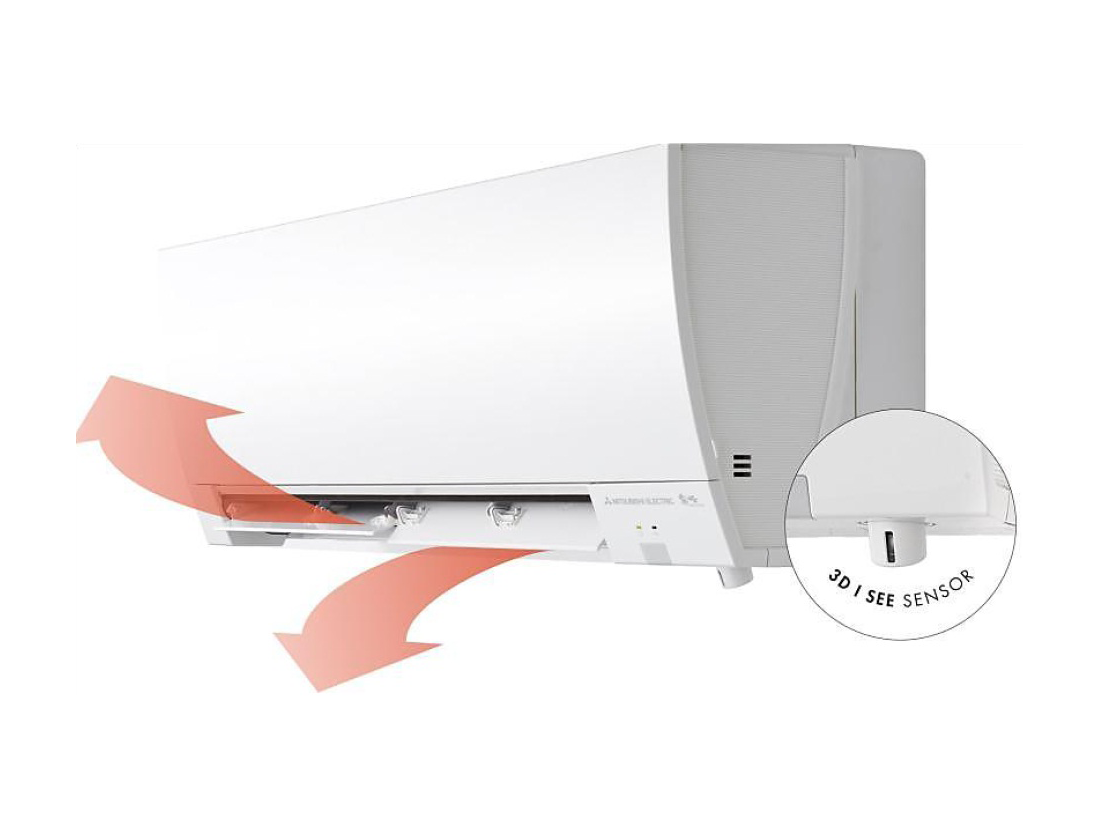 Mitsubishi Electric използва 3D i-see сензор, чрез който триизмерно се сканират 752 различни точки в едно помещение и улавя човешко присъствие. По този начин регулира въздуха спрямо местоположението на хората в стаята и ако помещението не се обитава се намалява автоматично енергийната консумация.
