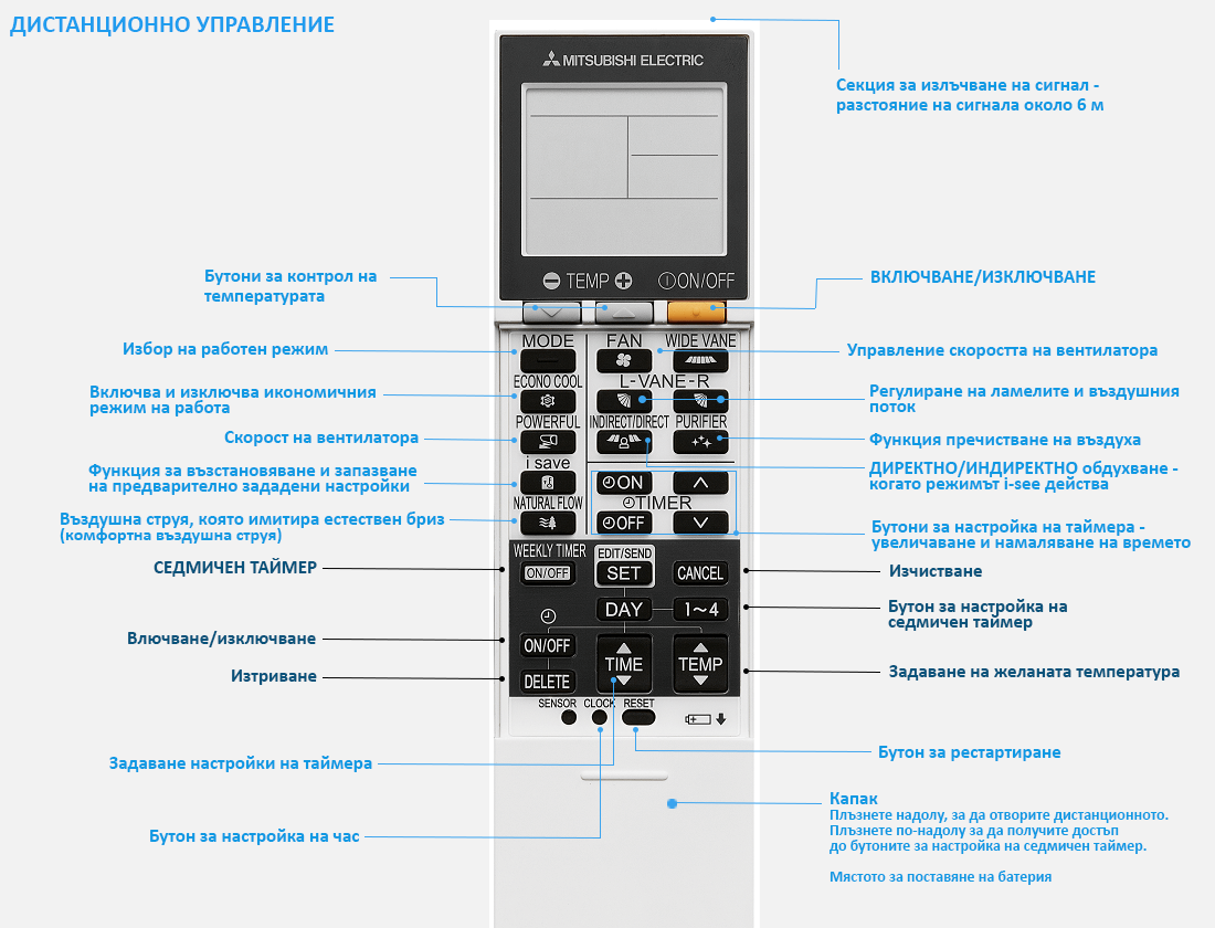 Климатиците са съвместими с дистанционно управление тип PAR-32MAA или PAC-YT52CRA, което притежава множество функции за управление. |