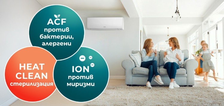 Йонният филтър успява да неутрализира неприятните миризми, а ACF филтрацията се справя с основните алергени. HEAT CLEAN стерилизацията унищожава плесен и бактерии.
