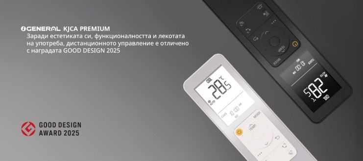 Дистанционното управление е още по-лесно и приятно благодарение на интуитивните LED екран и интерфейс. Изключително леко и компактно е, а функциите са разположени с мисъл: основните функции са групирани в меню с ясни пиктограми за лесна употреба, а по-рядко изпозлваните са подредени в категории. Отличено е с награда GOOD DESIGN 2025 от Японския институт по продуктов дизайн в Токио.