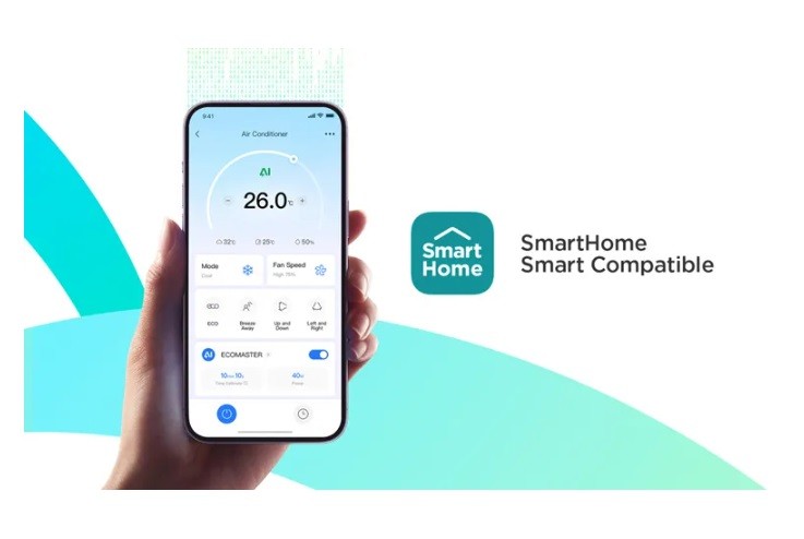 Благодарение на мобилното приложение може да управлявате климатика лесно от разстояние и да следите консумацията на енергия. Приложението SmartHome предоставя периодични енергийни отчети, проследява енергийния разход в реално време и дава специализирани съвети за пестене на енергия. Работи с Amazon Alexa, Google Home и IFTTT.