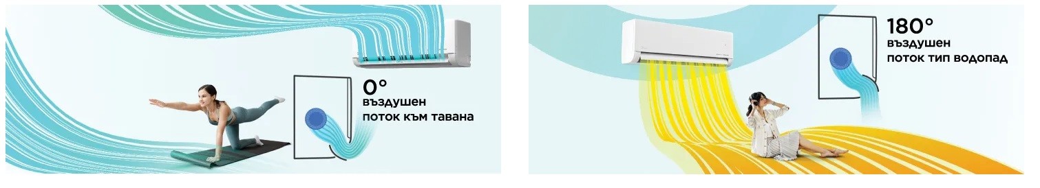 Жалузите се движат автоматично във всички посоки за равномерно разпределение на температурата в помещението.